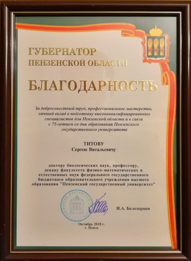 С.В. Титов отмечен благодарностью Губернатора Пензенской области!
