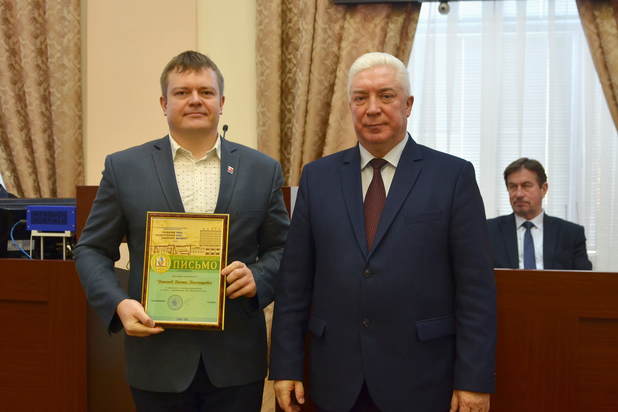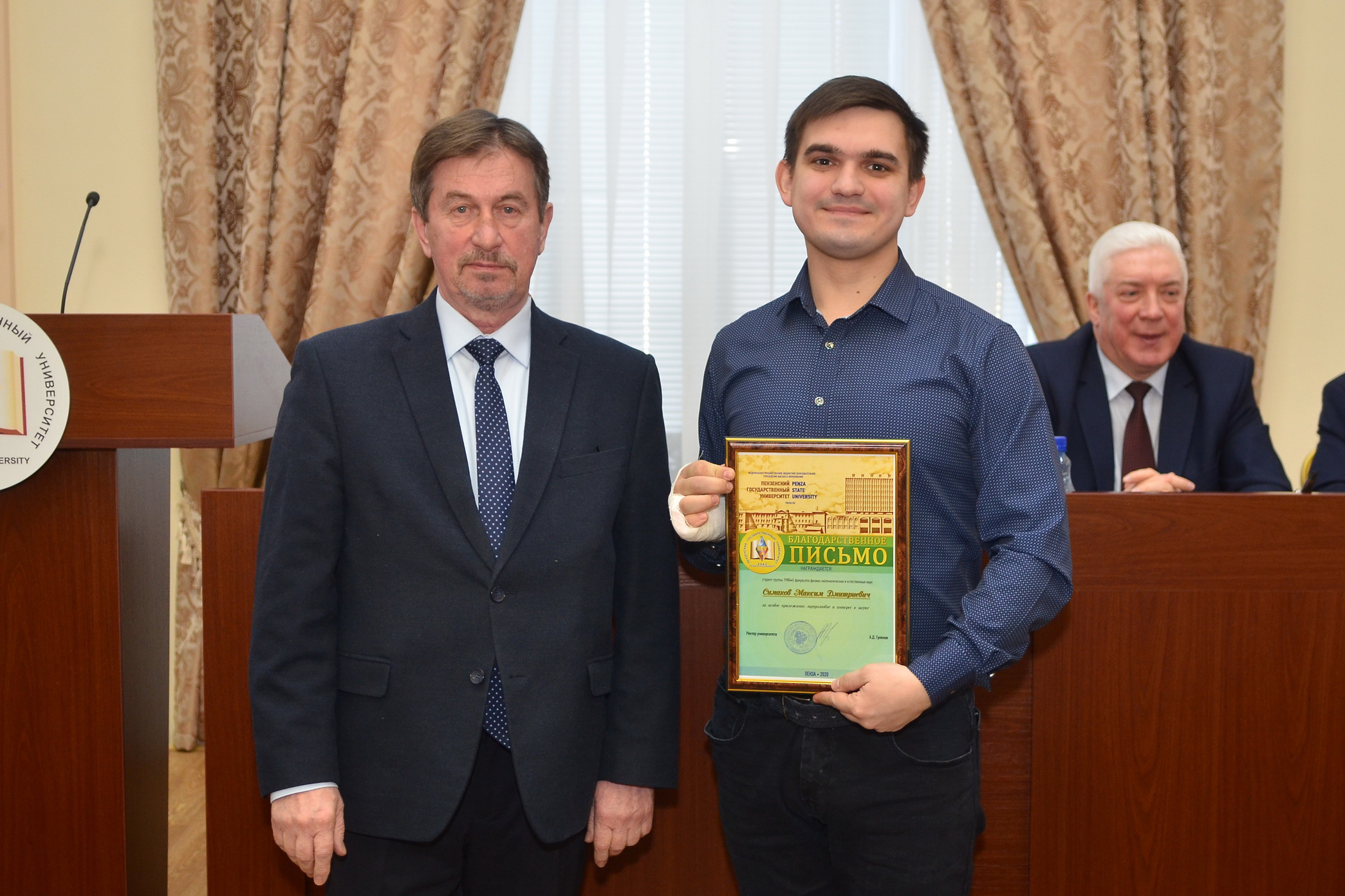 Кроме того, благодарственные письма ректора ПГУ получили: доцент В.А. Чернышов, магистрант М.Д. Симаков, бакалавр Ю.А. Пастухова.